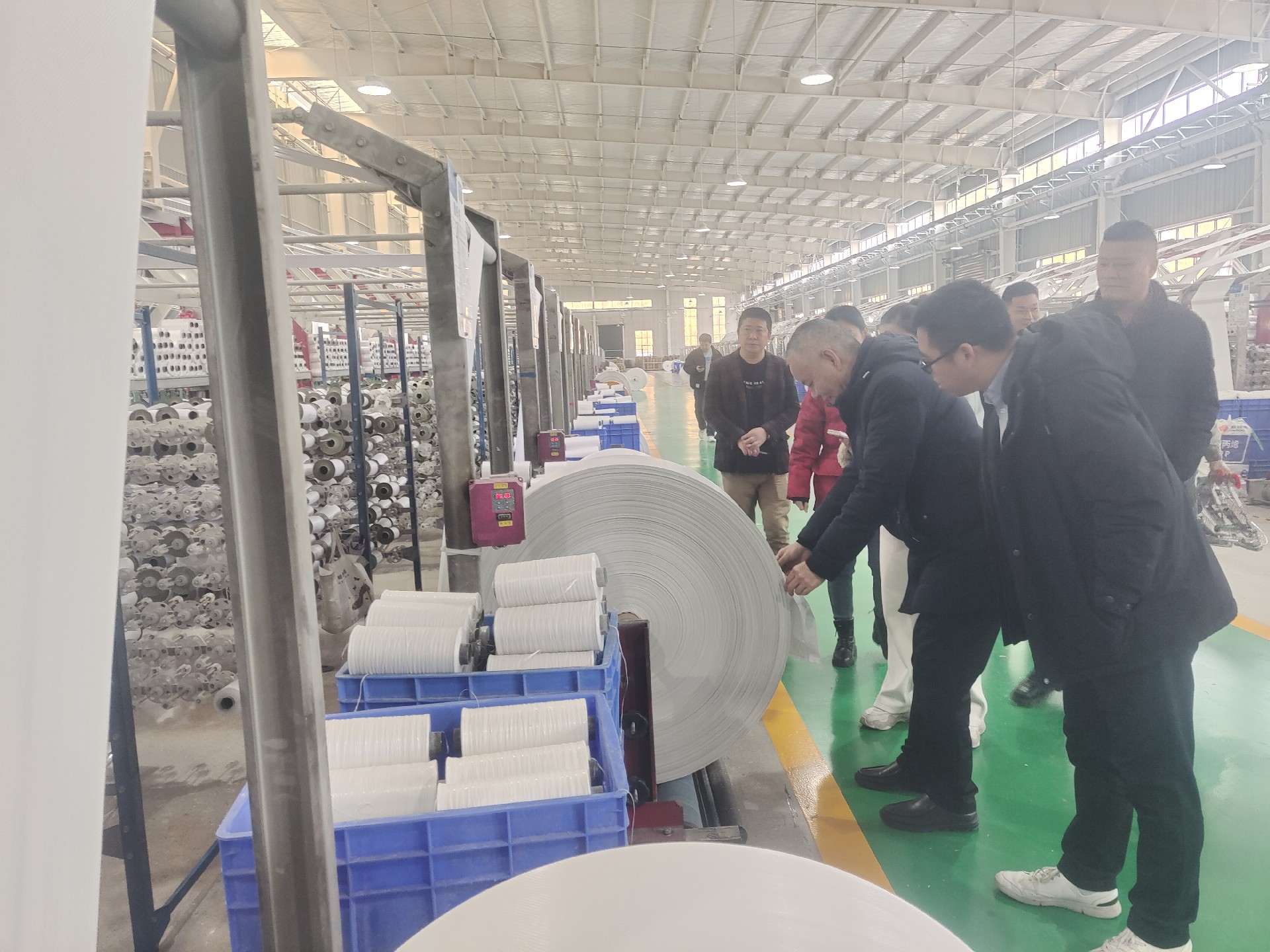 考察期間,久大鹽業(yè)采購(gòu)團(tuán)隊(duì)先后深入我司拉絲車間、編織車間、彩印覆膜車間及成品倉(cāng)儲(chǔ)區(qū),實(shí)地查看塑編袋從原料拉絲、經(jīng)緯編織到彩印覆膜、裁切縫制的全流程生產(chǎn)工藝,詳細(xì)了解核心生產(chǎn)設(shè)備運(yùn)行精度、質(zhì)量檢測(cè)體系及產(chǎn)能規(guī)模。在生產(chǎn)現(xiàn)場(chǎng),團(tuán)隊(duì)重點(diǎn)核查了食品級(jí)塑編包裝的原料安全溯源、生產(chǎn)環(huán)境潔凈度、環(huán)保處理流程及產(chǎn)品耐磨、防潮、承重等關(guān)鍵性能指標(biāo),對(duì)我司嚴(yán)格的品質(zhì)管控標(biāo)準(zhǔn)和高效的塑編包裝生產(chǎn)運(yùn)營(yíng)模式給予高度認(rèn)可。